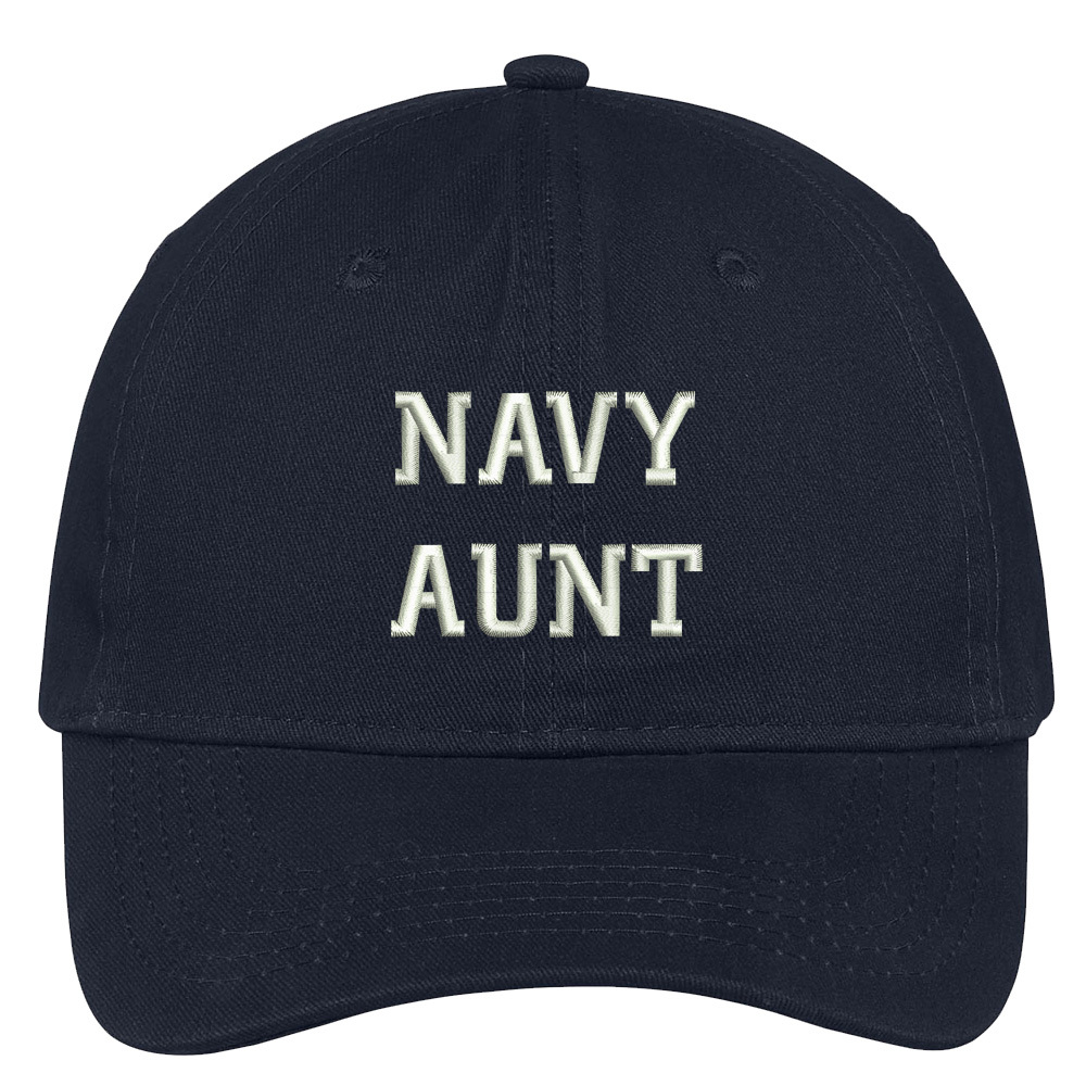 Navy Aunt Embroidered Soft Crown 100% Brushed Cotton Cap