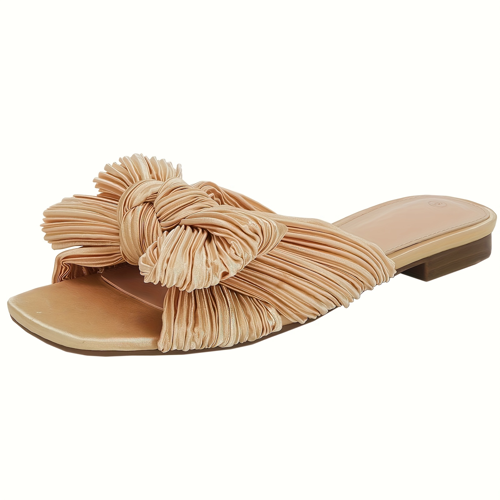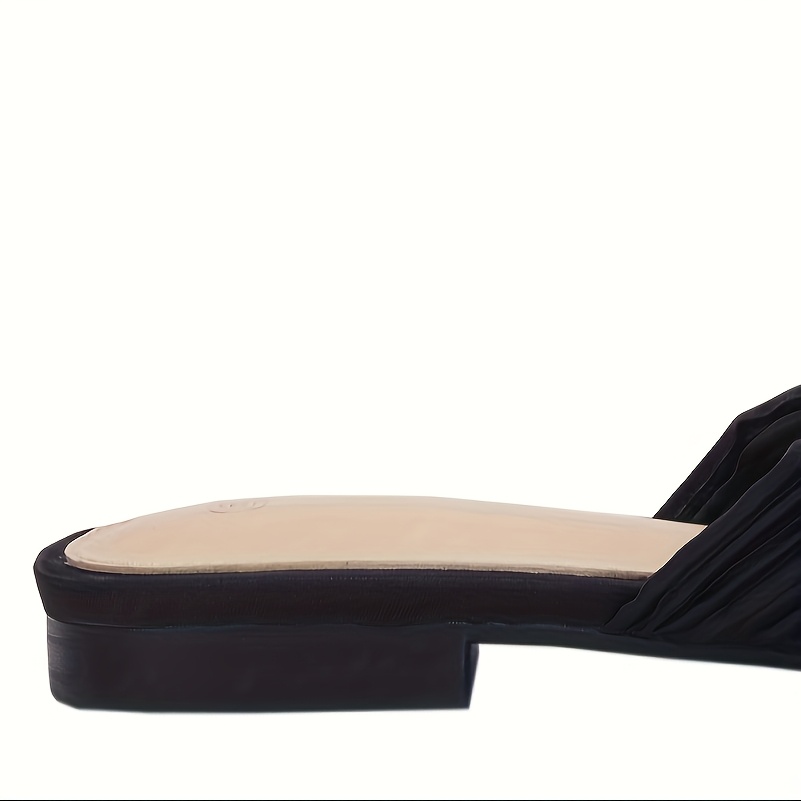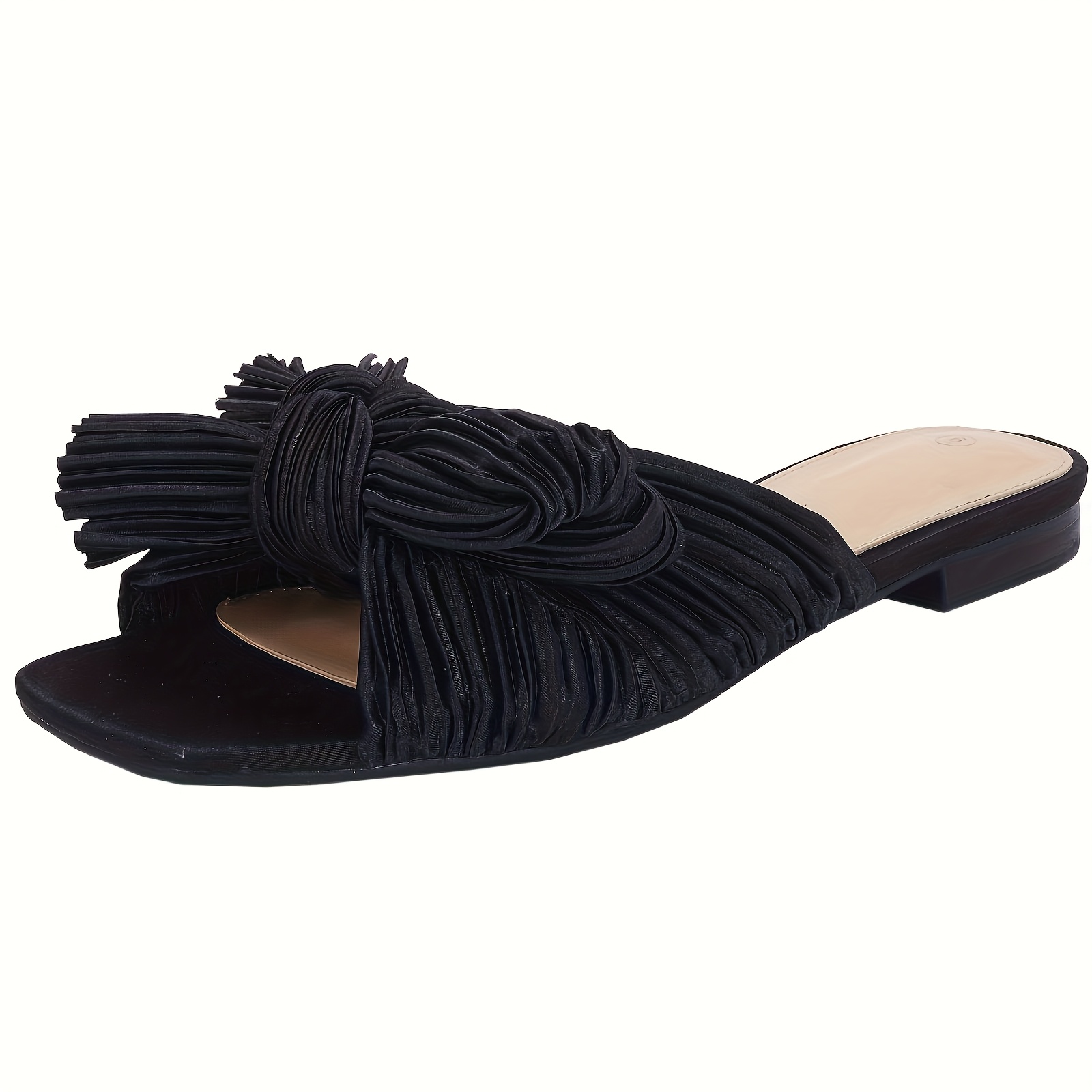 - Women’s Pleated Bow Flat Slide Sandals – Open Square Toe Slip-On Summer Shoes with Breathable Fabric Upper & Soft Synthetic Cover Insole, Machine Washable Casual Comfort Footwear, Elegant Shoe Design